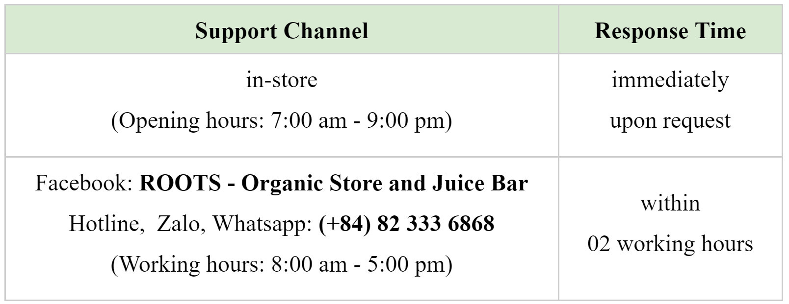 i. ROOTS shall respond to Customers via email or text message within 01 working day after receiving the returned item.