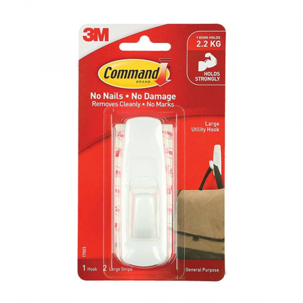 Command, Large Utility Hook, Holds 2.2kg, 1 Hook & 2 Large Strips - 3M