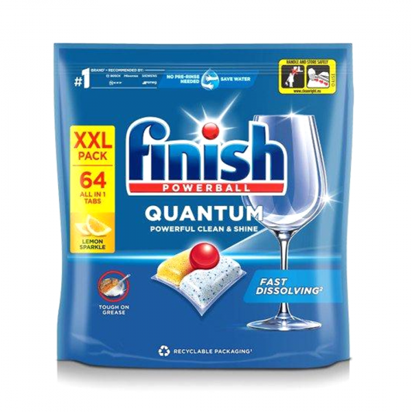 Powerball, Quantum Powerful Clean & Shine, Lemon Sparkle, XXL Pack, 64 Tabs (665.6g) - FINISH
