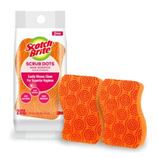 Scotch-Brite, Scrub Dots Non-Scratch Scrub Sponge, 2 Pack (114 x 69 x 26mm) - 3M
