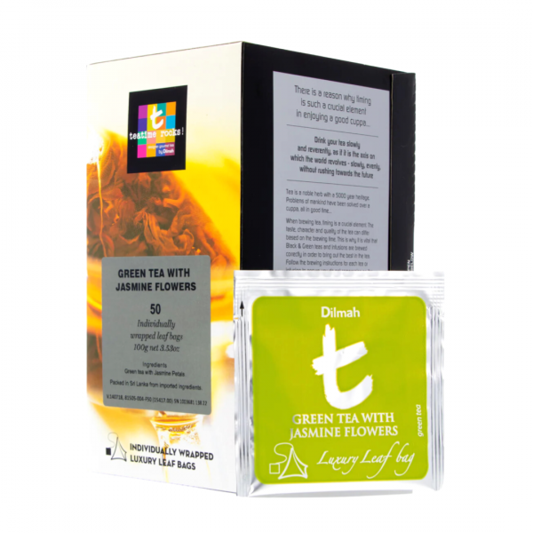 T Sachet Green Tea with Jasmine Flowers, 50 Tea Bags, 3.53 oz (100g) - DILMAH