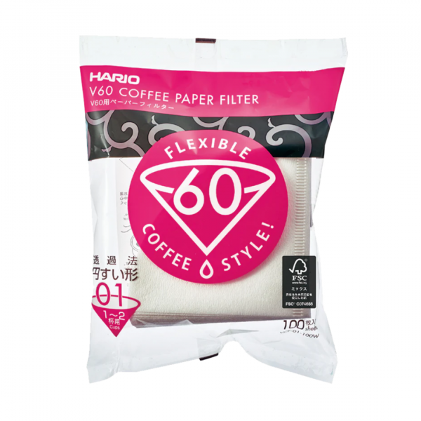 V60 Coffee Paper Filter, VCF-01-100W, 100 Sheets - HARIO