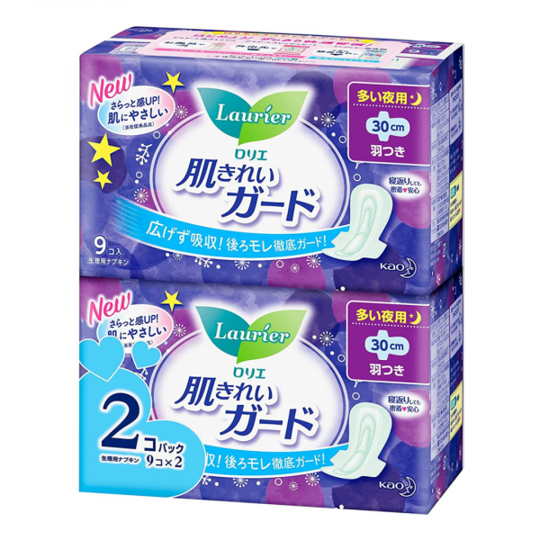 Băng Vệ Sinh Ban Đêm Có Cánh, Sanitary Pads, Night, 2 Gói, 18 Miếng (30cm) - LAURIER