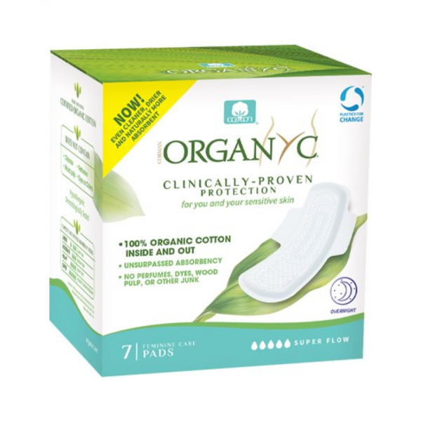 Băng Vệ Sinh Hữu Cơ Ban Đêm, Organic Feminine Care Pads, Overnight, Super Flow, 7 Miếng - ORGANYC