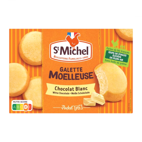 Bánh Bông Lan Socola Trắng, Galette Moelleuse, Chocolat Blanc, 6 Cái (180g) - ST MICHEL