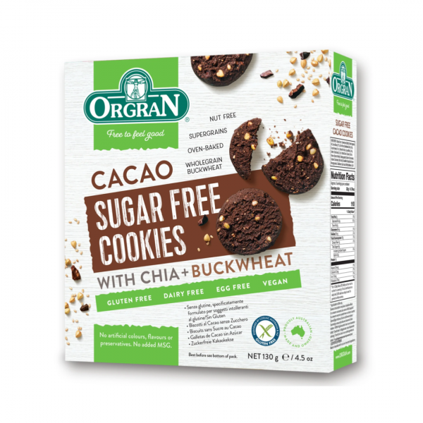 Bánh Quy Kiều Mạch Hạt Chia Socola Không Đường, Sugar Free Cookies, Cacao with Chia & Buckwheat, 4.5 oz (130g) - ORGRAN