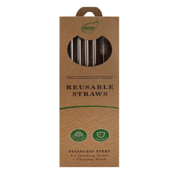 Bộ Ống Hút Sắt, Reusable Straws, Stainless Steel Drinking Straws & Cleaning Brush, 5 Cái - UNCLE BILLS