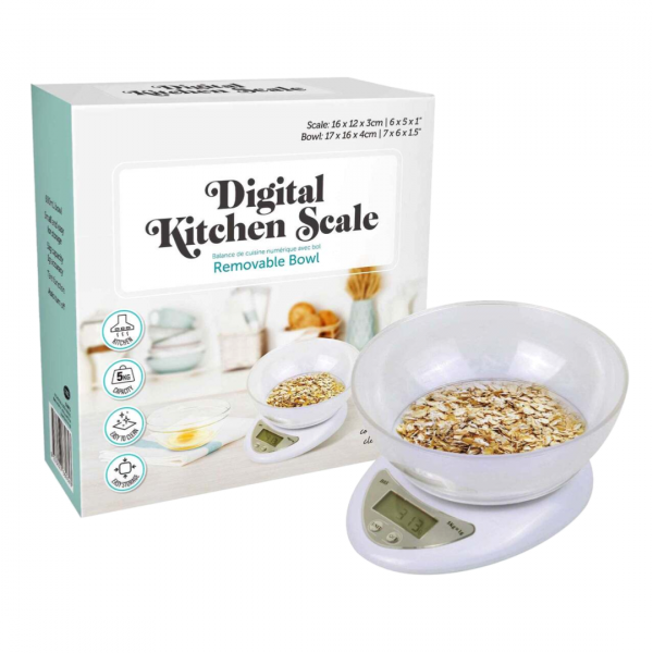 Cân Nhà Bếp Kèm Tô Đựng, Digital Kitchen Scale (16 x 12 x 3cm) with Removable Bowl (17 x 16 x 4cm) - UNCLE BILLS