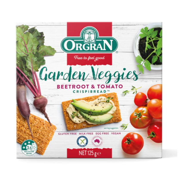 Cracker Củ Dền & Cà Chua, Garden Veggies, Beetroot & Tomato Crispibread, 4.4 oz (125g) - ORGRAN
