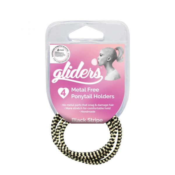 Dây Cột Tóc Đuôi Ngựa Sọc Vằn Đen, Metal Free Ponytail Holders, Black Stripe, 4 Cái - GLIDERS