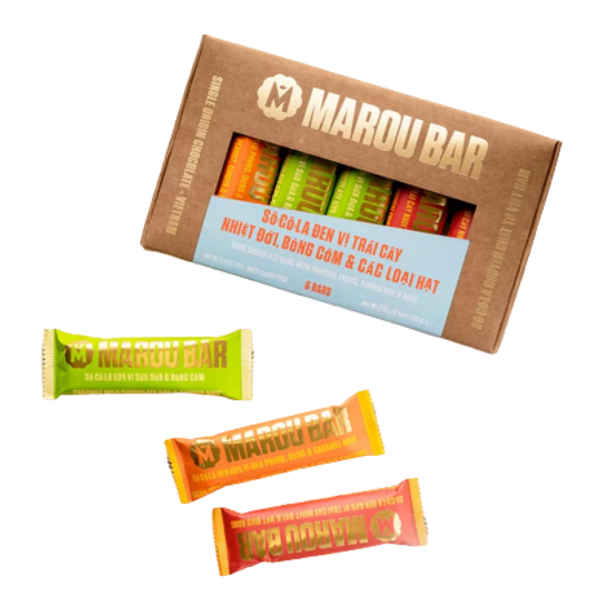 Hộp Quà Socola Đen Vị Trái Cây Nhiệt Đới, Bỏng Cốm & Các Loại Hạt, Marou Bar, Multi Flavour Pack, 6 Thanh (210g) - MAROU