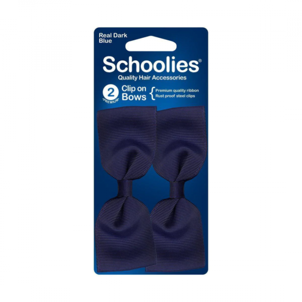 Kẹp Nơ Màu Xanh Dương Đậm, Clip On Bows, Real Dark Blue, 2 Cái - SCHOOLIES