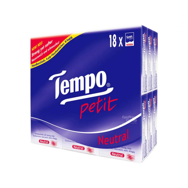 Khăn Giấy Bỏ Túi 4 Lớp Không Mùi, Petit, Handkerchiefs, Neutral, 18 Gói - TEMPO