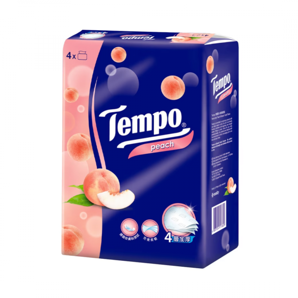 Khăn Giấy Rút 4 Lớp Hương Đào, Softpack Facial Tissue, Peach, 4 Gói (160 x 195mm) - TEMPO