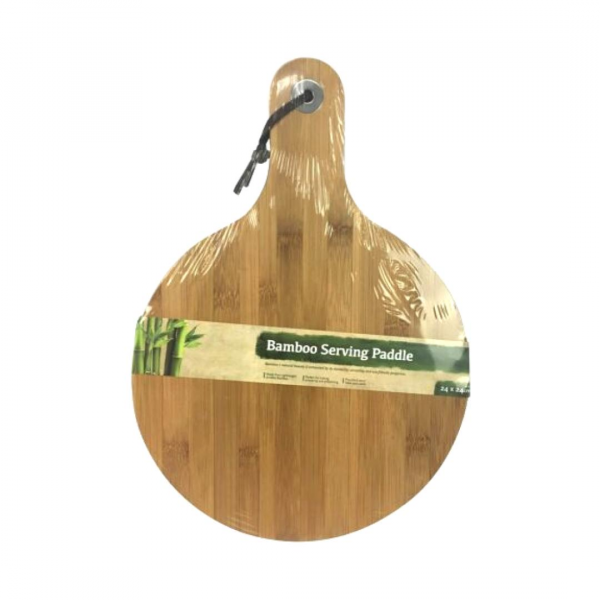 Khay Gỗ Đựng Đồ Ăn, Round Bamboo Serving Paddle with Handle (24 x 24 x 0.8cm) - UNCLE BILLS