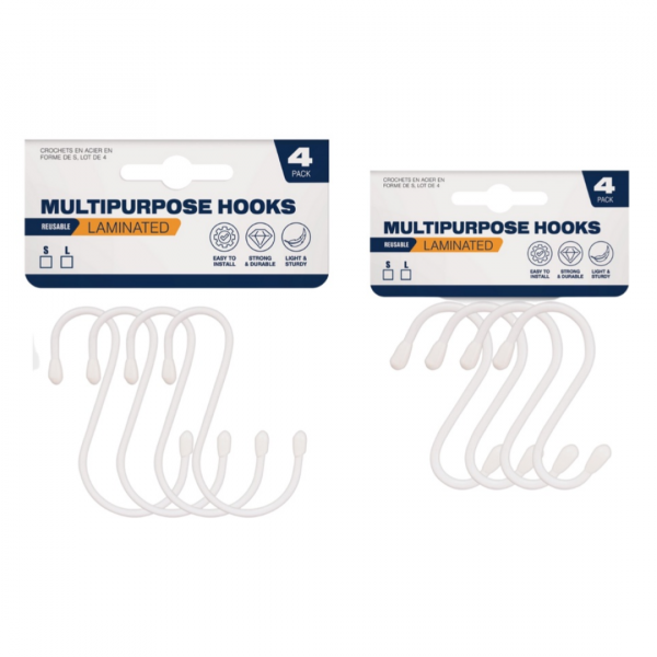 Móc Chữ S Kim Loại, S-Shape Laminated Multipurpose Hooks, 4 Cái - UNCLE BILLS