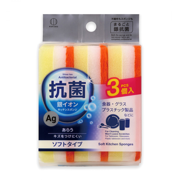 Mút Rửa Chén Chống Khuẩn, Antibacterial Soft Kitchen Sponges, 3 Miếng (11 x 3 x 25cm) - KOKUBO