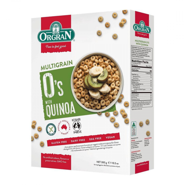 Ngũ Cốc Đa Hạt & Diêm Mạch Hình Vòng, Multigrain O`s with Quinoa, Gluten Free, 10.5 oz (300g) - ORGRAN