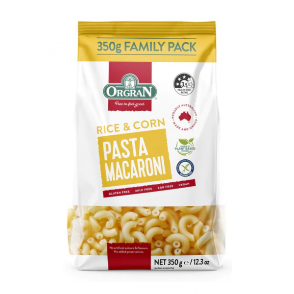 Nui Ống Từ Bắp & Gạo, Rice & Corn Pasta Macaroni, Gluten Free, 12.3 oz (350g) - ORGRAN