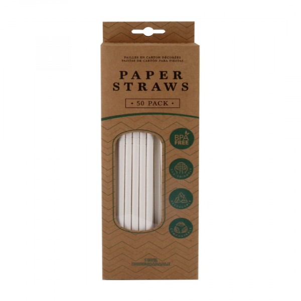 Ống Hút Giấy Trắng, White Paper Straws, 100% Biodegradable, 50 Cái - UNCLE BILLS