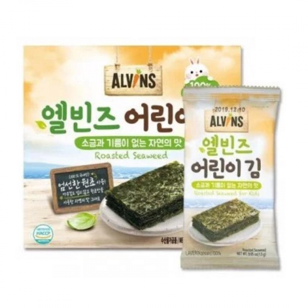 Rong Biển Cho Bé, Organic Roasted Seaweed, 9+ Tháng, 10 Gói, 0.53 oz (15g) - ALVINS
