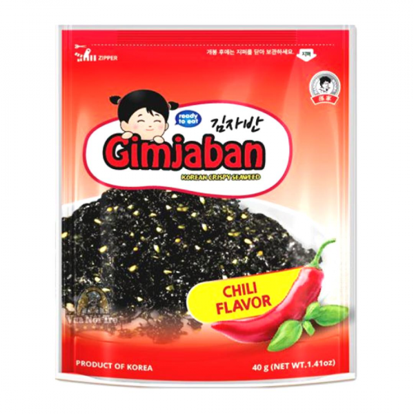 Rong Biển Giòn Trộn Cơm Vị Cay, Korean Crispy Seaweed, Chili Flavor, 1.41 oz (40g) - GIMJABAN