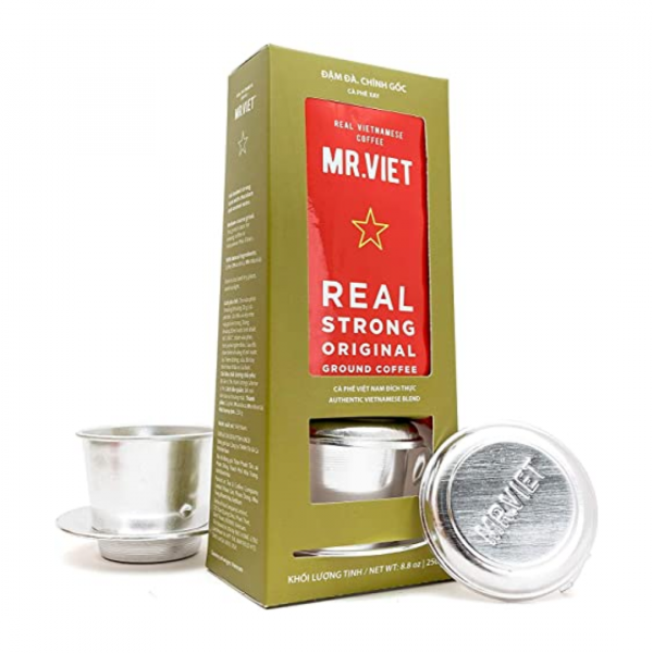 Set Cà Phê Rang Xay Pha Phin, Real Strong Original Ground Coffee with Coffee Filter, 8.8 oz (250g) - MR. VIET