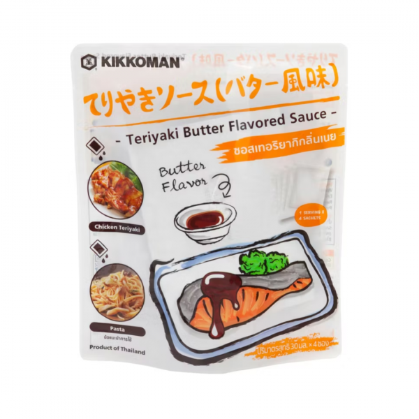 Sốt Tẩm Ướp Teriyaki Vị Bơ, Teriyaki Butter Flavored Sauce, 4 Gói (120ml) - KIKKOMAN