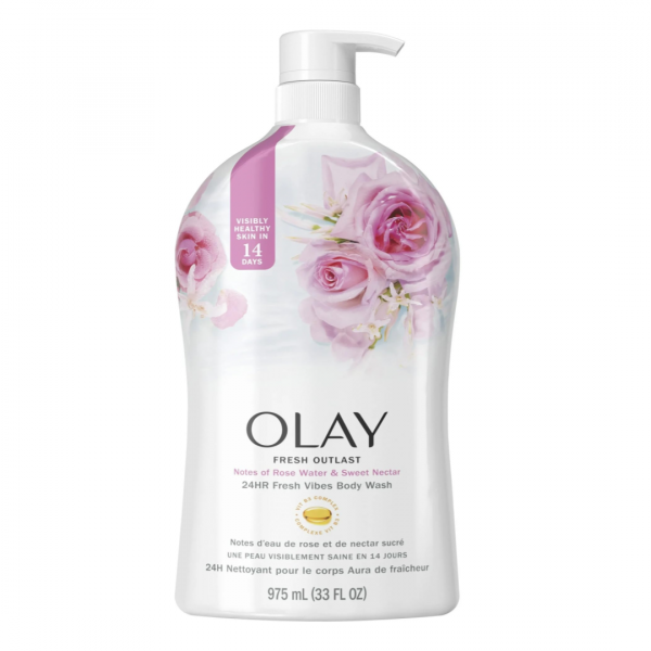 Sữa Tắm Mật Hoa Hồng, 24H Fresh Vibes Body Wash, Fresh Outlast Rose Water & Sweet Nectar, 33 fl oz (975ml) - OLAY