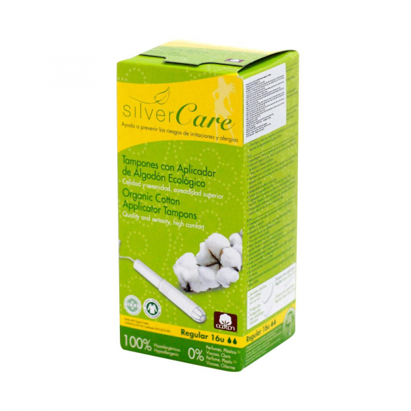 Tampon Hữu Cơ 2 Giọt Có Cần Đẩy, Organic Cotton Tampons with Applicator, Regular, 16 Cái - SILVERCARE