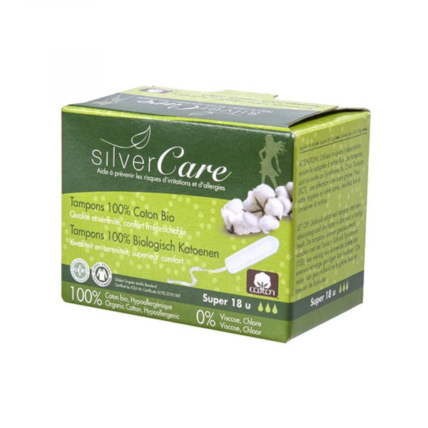 Tampon Hữu Cơ 3 Giọt, Organic Cotton Tampons, Super, 18 Cái - SILVERCARE