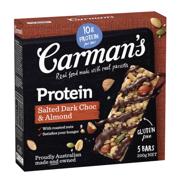 Thanh Năng Lượng Socola Đắng & Hạnh Nhân, Protein, Salted Dark Choc & Almond, 5 Thanh (200g) - CARMAN'S