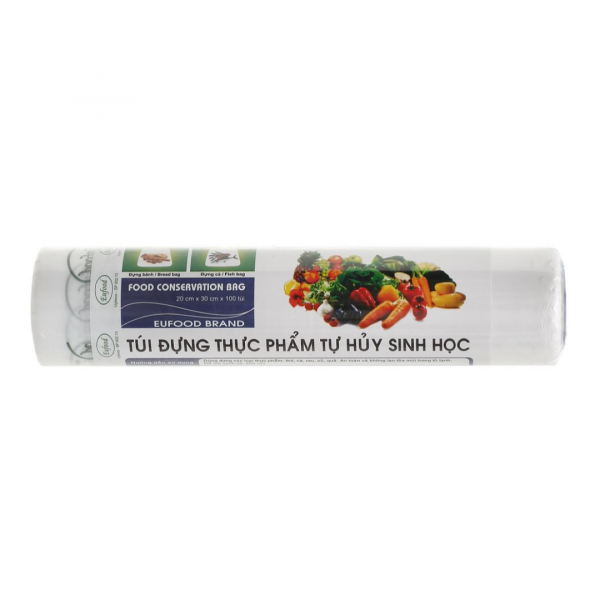Túi Đựng Thực Phẩm Tự Phân Hủy Sinh Học, Biodegradable Food Conservation Bag, 100 Túi (20 x 30cm) - EUFOOD