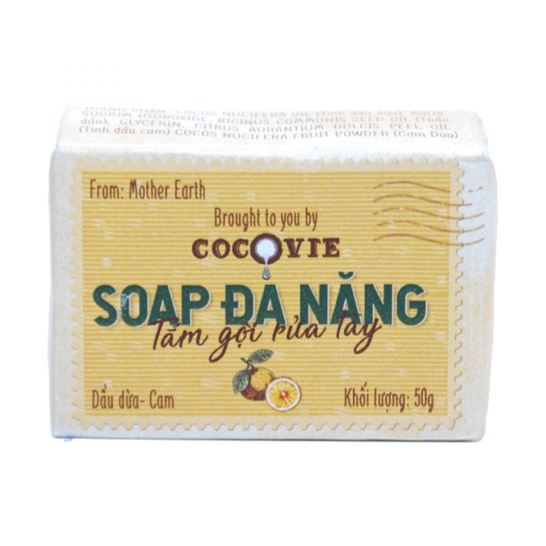 Xà Bông Đa Năng Dầu Dừa Cam, Multi-Purpose Soap, Coconut Oil & Orange (50g) - COCOVIE