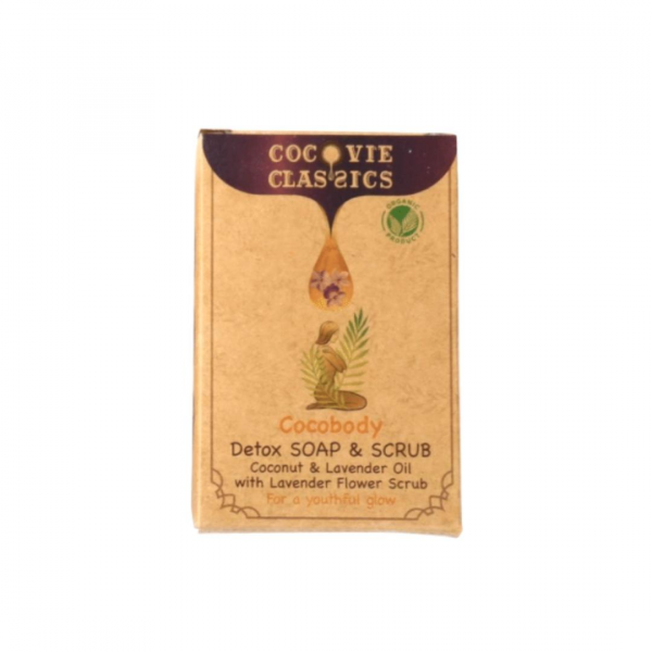 Xà Bông Tẩy Tế Bào Chết Dầu Dừa & Oải Hương, Detox Soap & Scrub, Coconut & Lavender Oil with Lavender Flower Scrub (100g) - COCOVIE